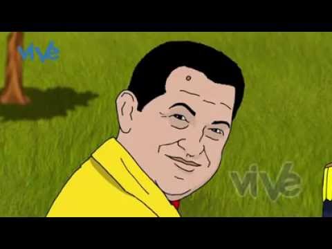 "Un spot diffusé sur une chaîne progouvernementale montre l'accueil réservé à l'ancien président Hugo Chavez par des illustres personnages lorsqu'il arrive au Ciel : on peut y reconnaître le président socialiste chilien Salvador Allende, Evita Peron, l'égérie des descamisados, les déshérités d'Argentine, Ernesto Che Guevara, le "guérillero héroïque", le Nicaraguayen Augusto César Sandino, et bien entendu Simon Bolivar, le patriarche de l'indépendance sud-américaine."